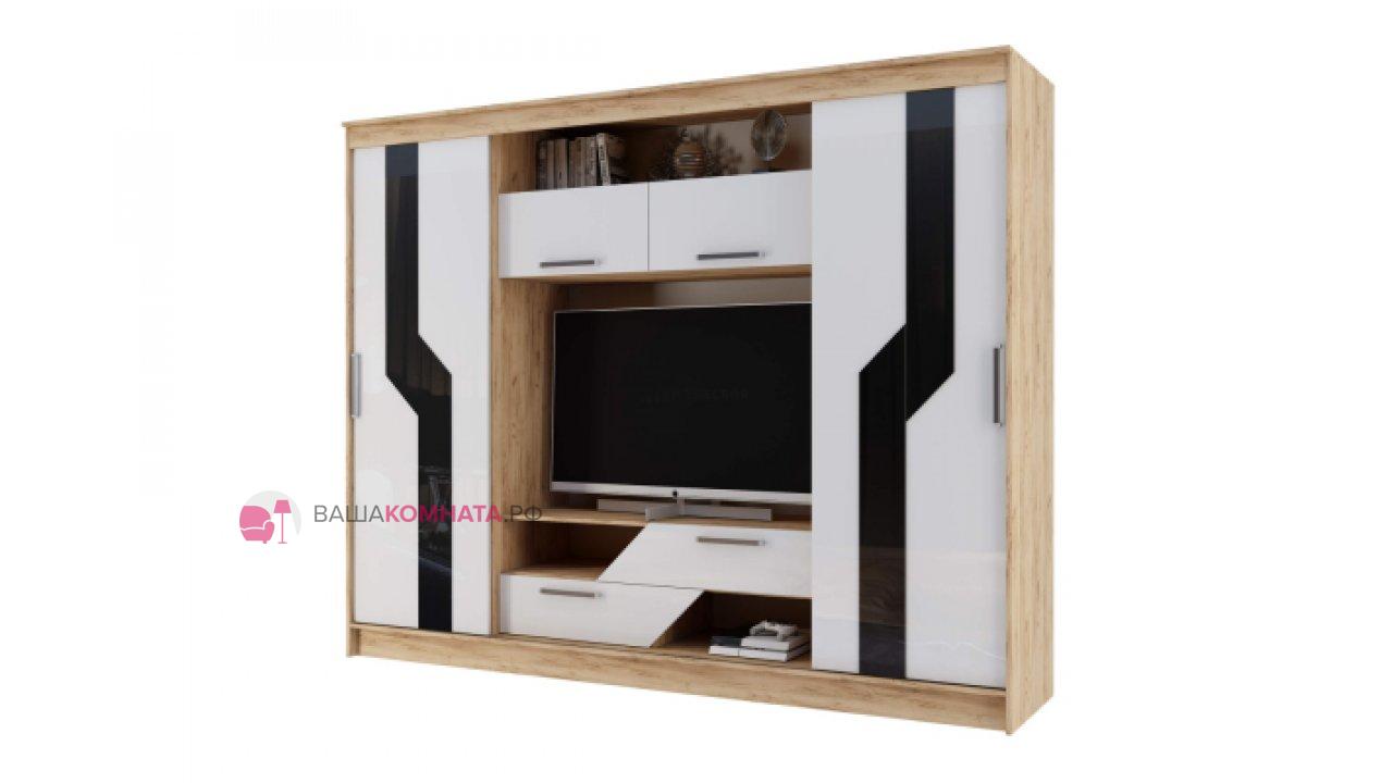 Гостиная "Кармен" (Улучшенная фурнитура) - Дуб вотан / Белый глянец