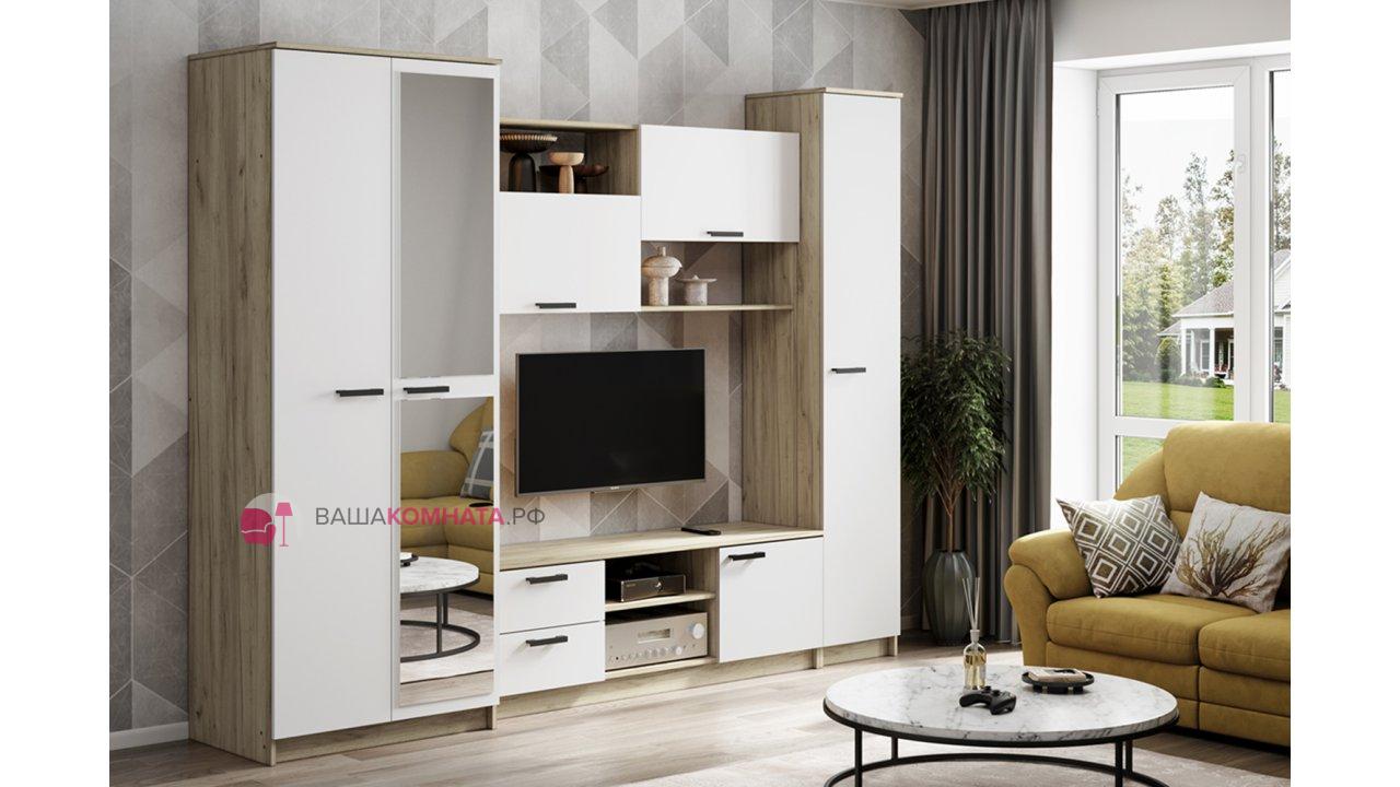 Гостинная "Марта-12" - Дуб крафт серый / Белый