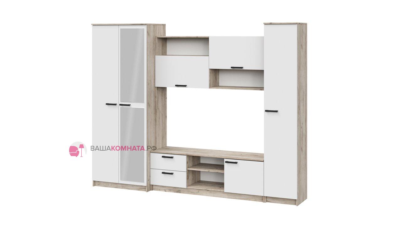 Гостинная "Марта-12" SL - Дуб крафт серый / Белый