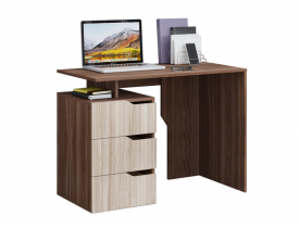 Удобный и максимально простой стол, очень практичный. Сверху поставил ноут и пару папок с доками, ящики быстренько канцелярией забил. Практически как в родном офисе нахожусь, только дома и в тапочках. Цвет прикольный, на нем пыль вообще практически не видно, под обои в комнату подходит. Жене тоже понравился, хоть она и любит больше темное.