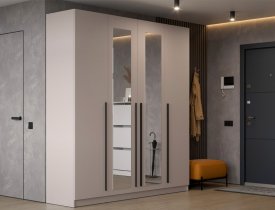 Центральные створки шкафа, оснащенные зеркалами, визуально расширяют пространство, наполняя его светом и воздухом. Зеркала не только функциональны, позволяя оценить свой внешний вид, но и служат декоративным акцентом, отражая интерьер комнаты и создавая интересные визуальные эффекты.