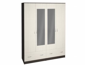 Шкаф 4х-створчатый "Квадро" с зеркалом - Ясень шимо темный / Ясень шимо светлый
