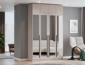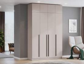 За двумя центральными дверьми находится широкая штанга для вешалок-плечиков с верхней одеждой, деловыми костюмами, красивыми платьями и другой одеждой. Полки, скрытые за боковыми дверьми, пригодятся для сложенной одежды, постельного и нижнего белья, разнообразных аксессуаров и коробок с обувью.