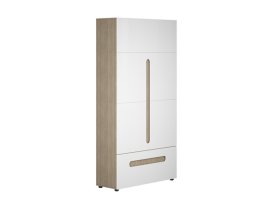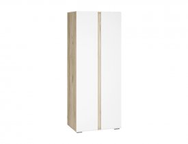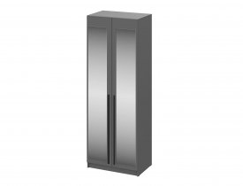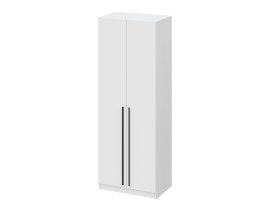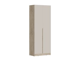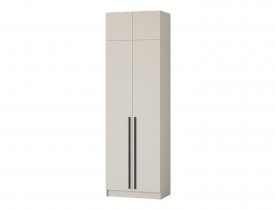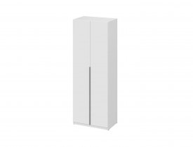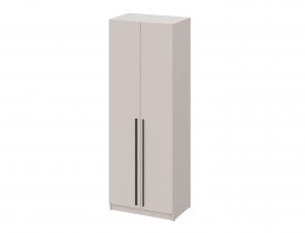 Вместительный двухсекционный шкаф с полками и штангой, имеет две глухих двери. Ручки дверей скрытые.