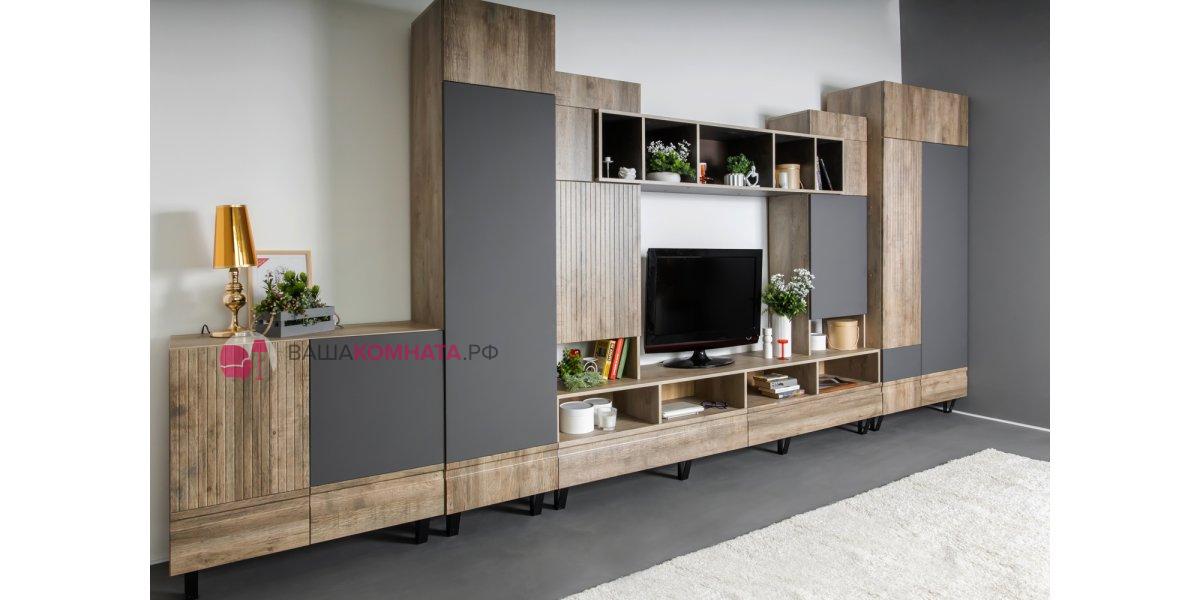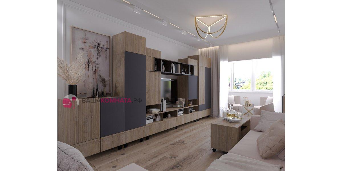 Шкаф "Нота-28" №1 0,9 м (Улучшенная фурнитура) - Дуб скандинавский бежевый+Графит / дуб эндгрейн