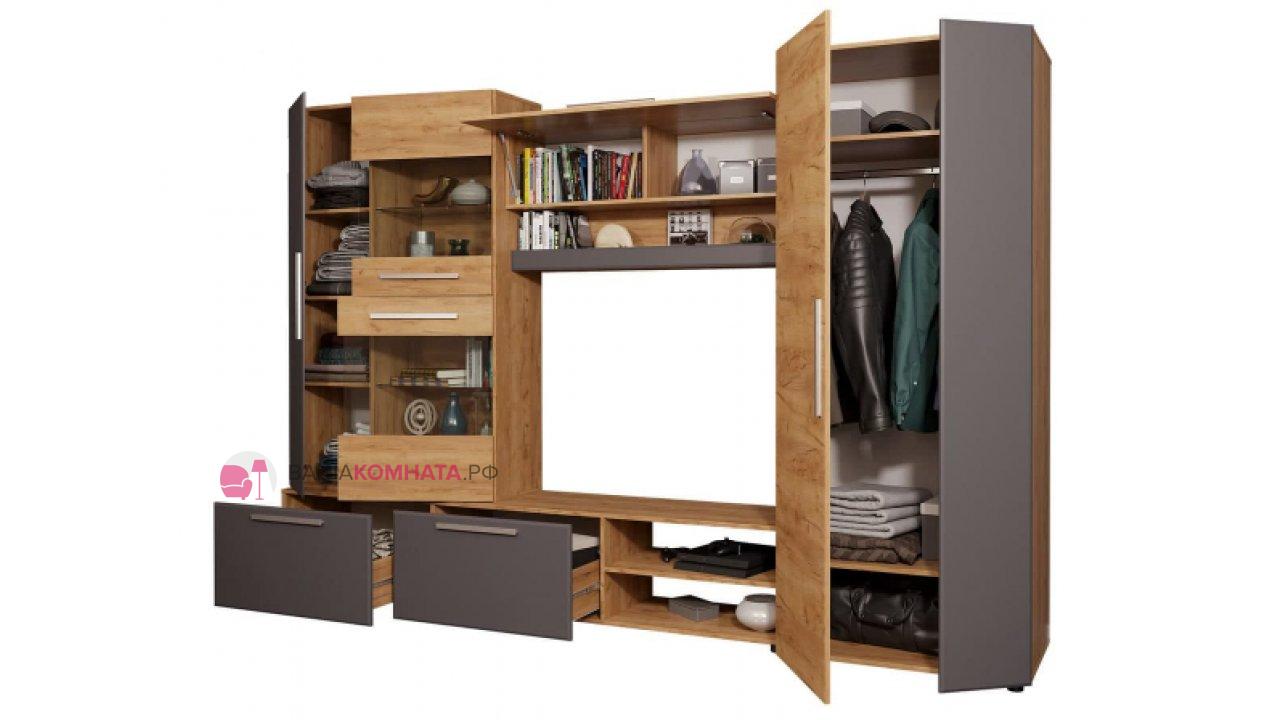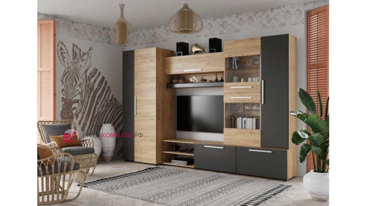 Стенка "Сафари" SL - Дуб Крафт золотой / Графит Софт матовый