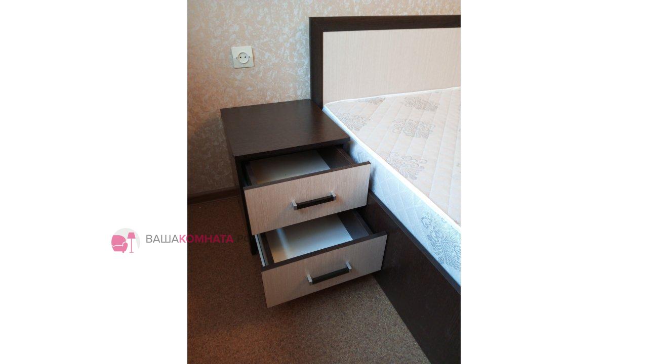 Стандартная прикроватная тумба с двумя вместительными ящиками на роликовых направляющих. Привычный и полюбившийся помощник для чтения перед сном, утреннего кофе в постель, неспешных вечерних трапез.
