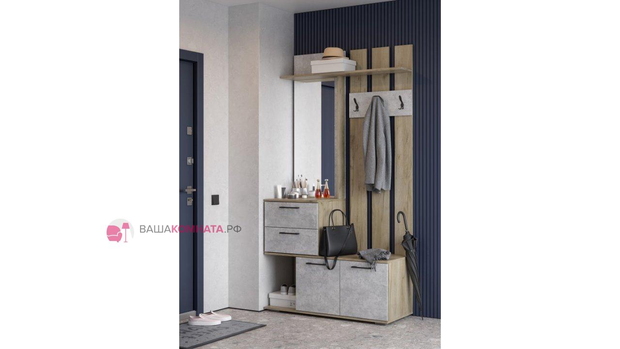 Вешалка "Бостон" ВШ-1 (Улучшенная фурнитура) - Дуб крафт серый / Бетонный камень
